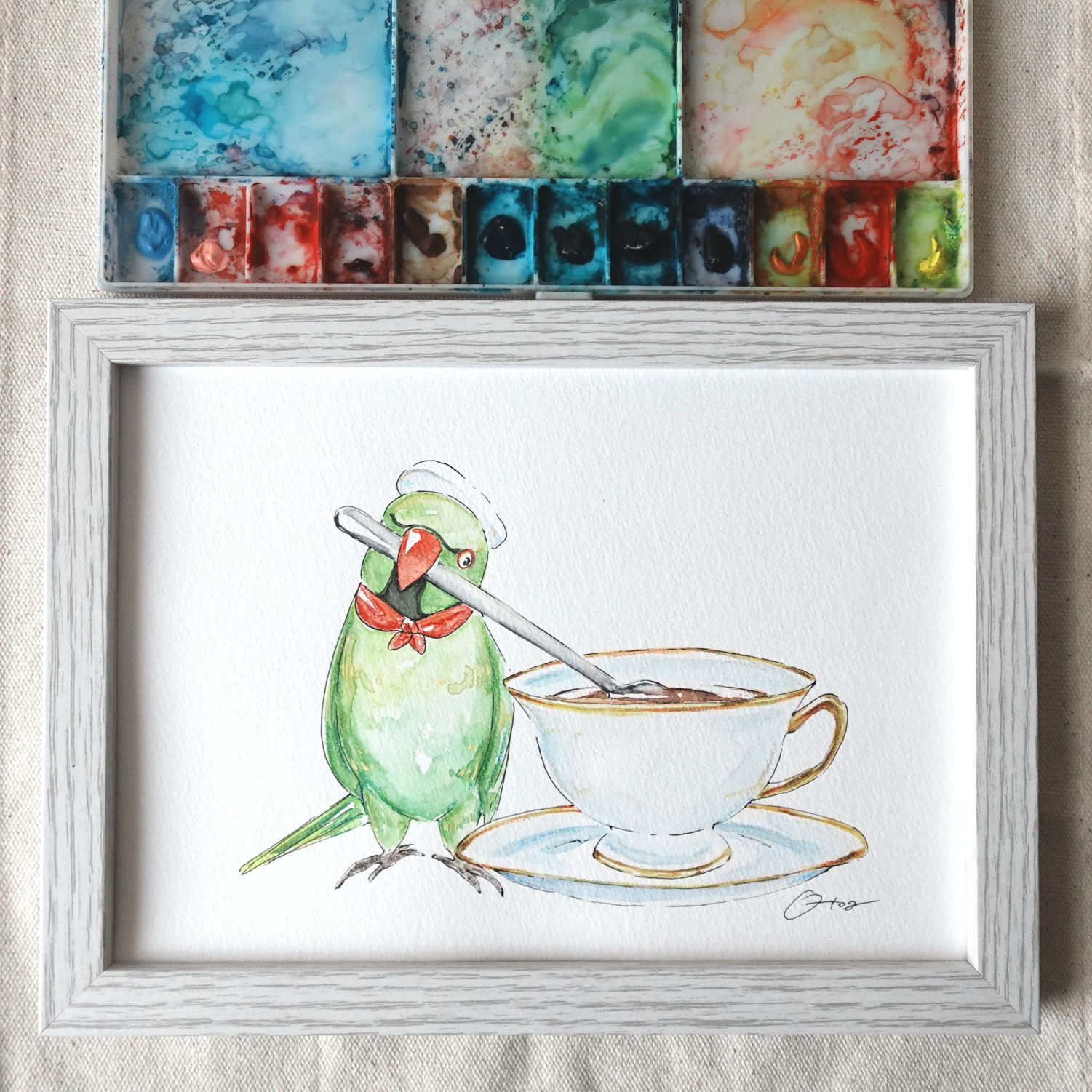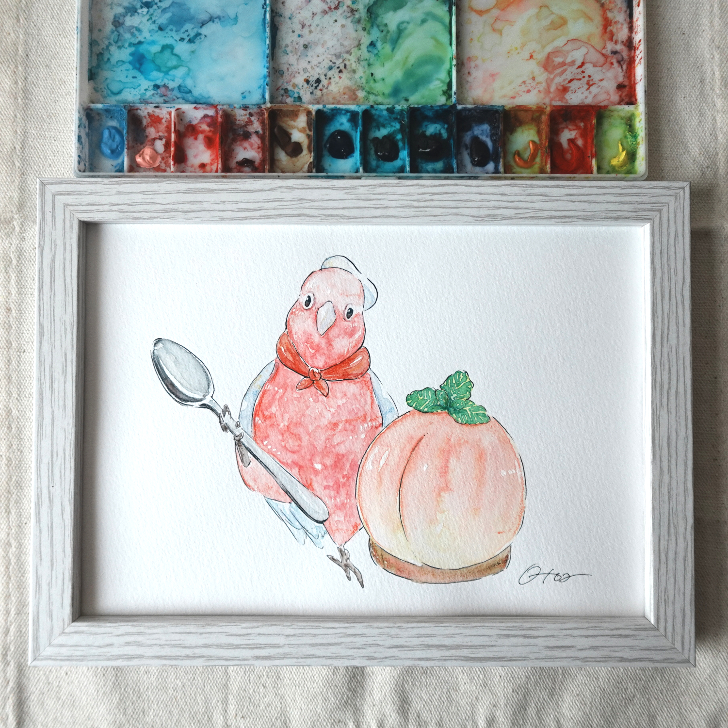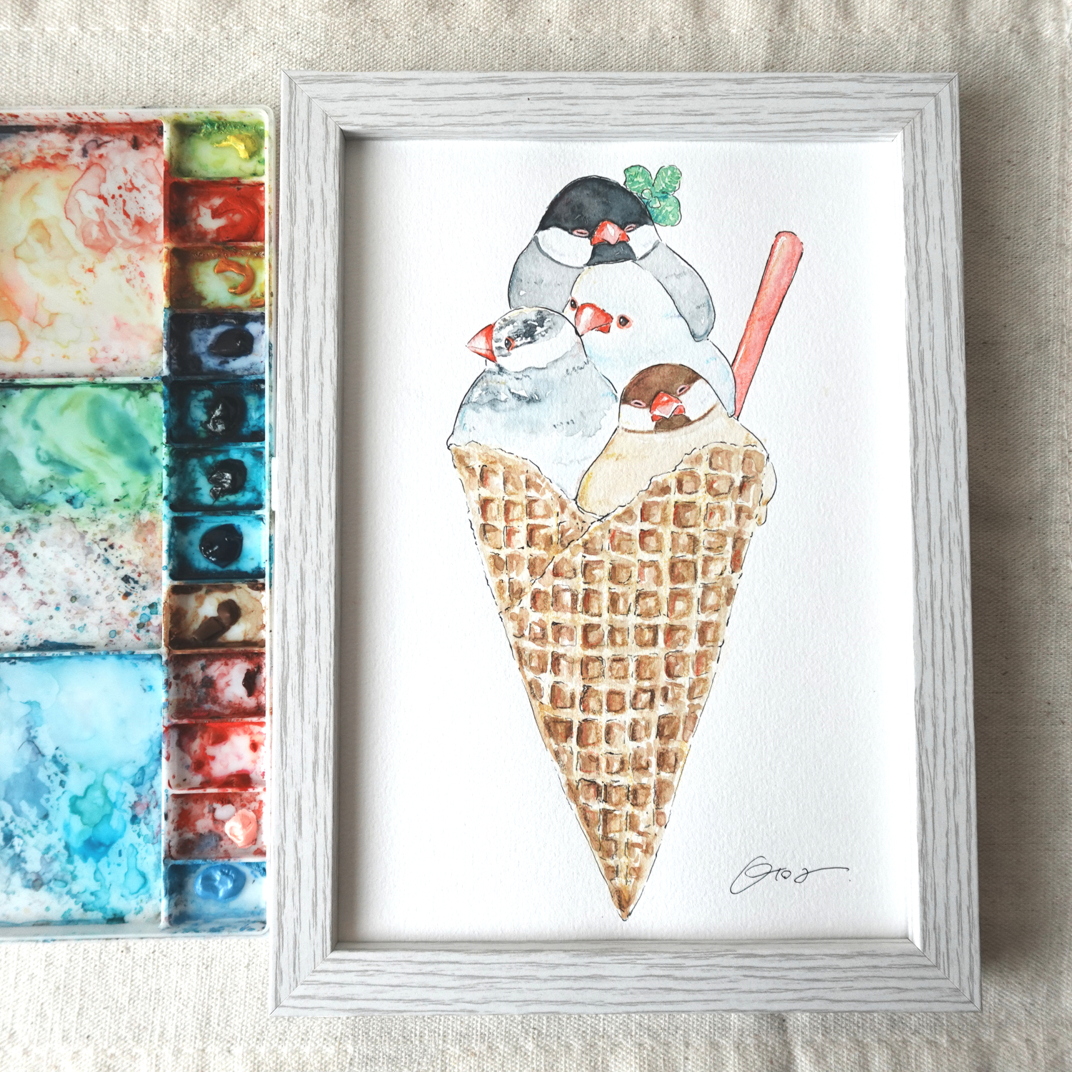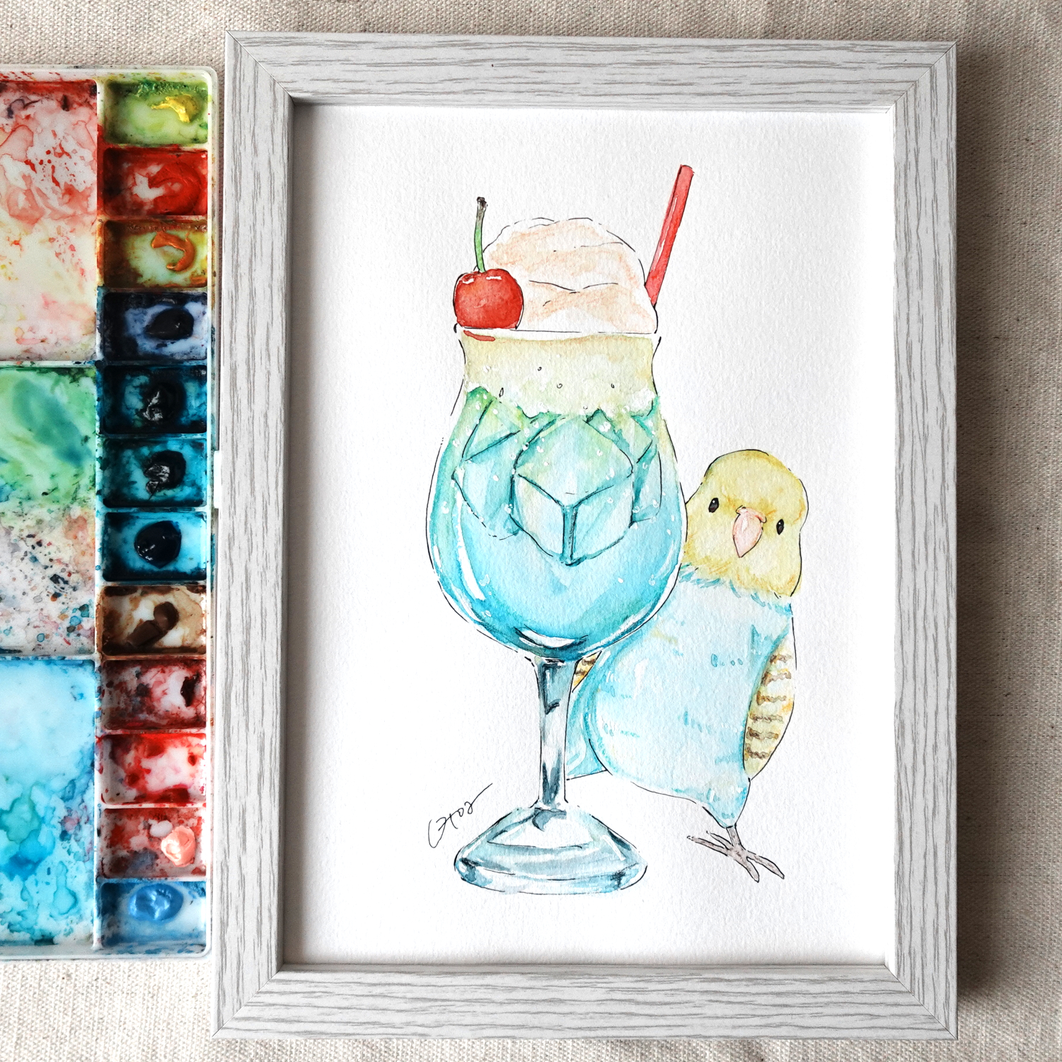今回の制作にあたり、ペンギンと大きく違ったところは色合いです。基本的にいつも描いているペンギンたちは白と黒がベースなのですが、小鳥たちはどの子もカラフルで、同じセキセイインコや文鳥でも色や模様が違う子もいてとても新鮮でした。