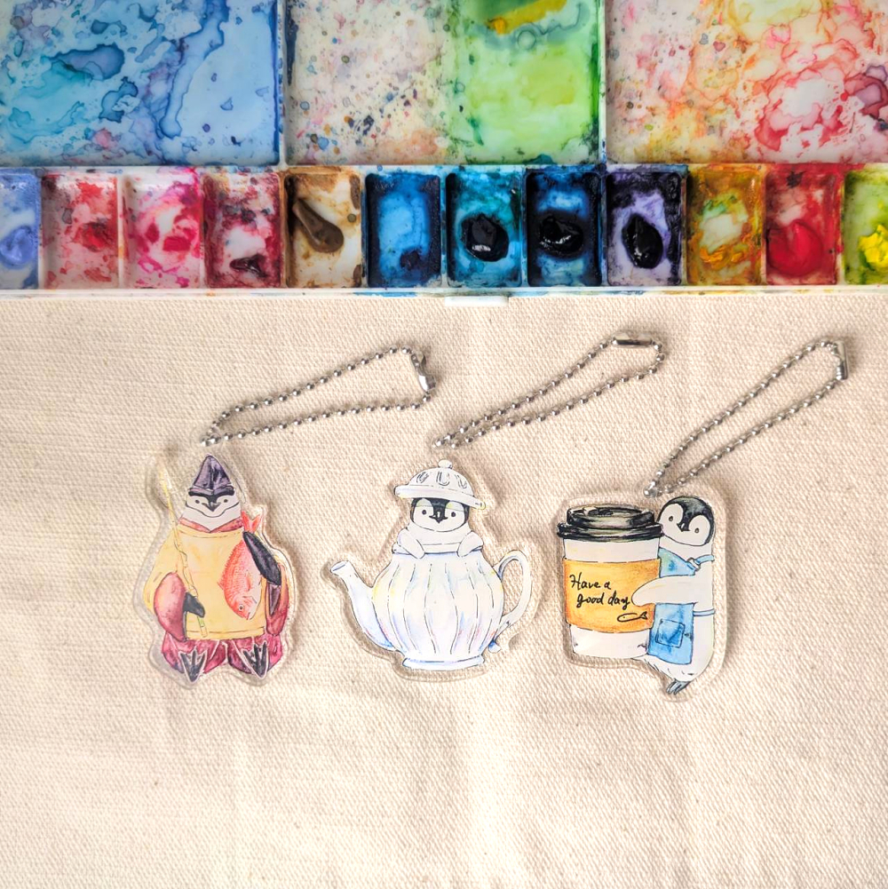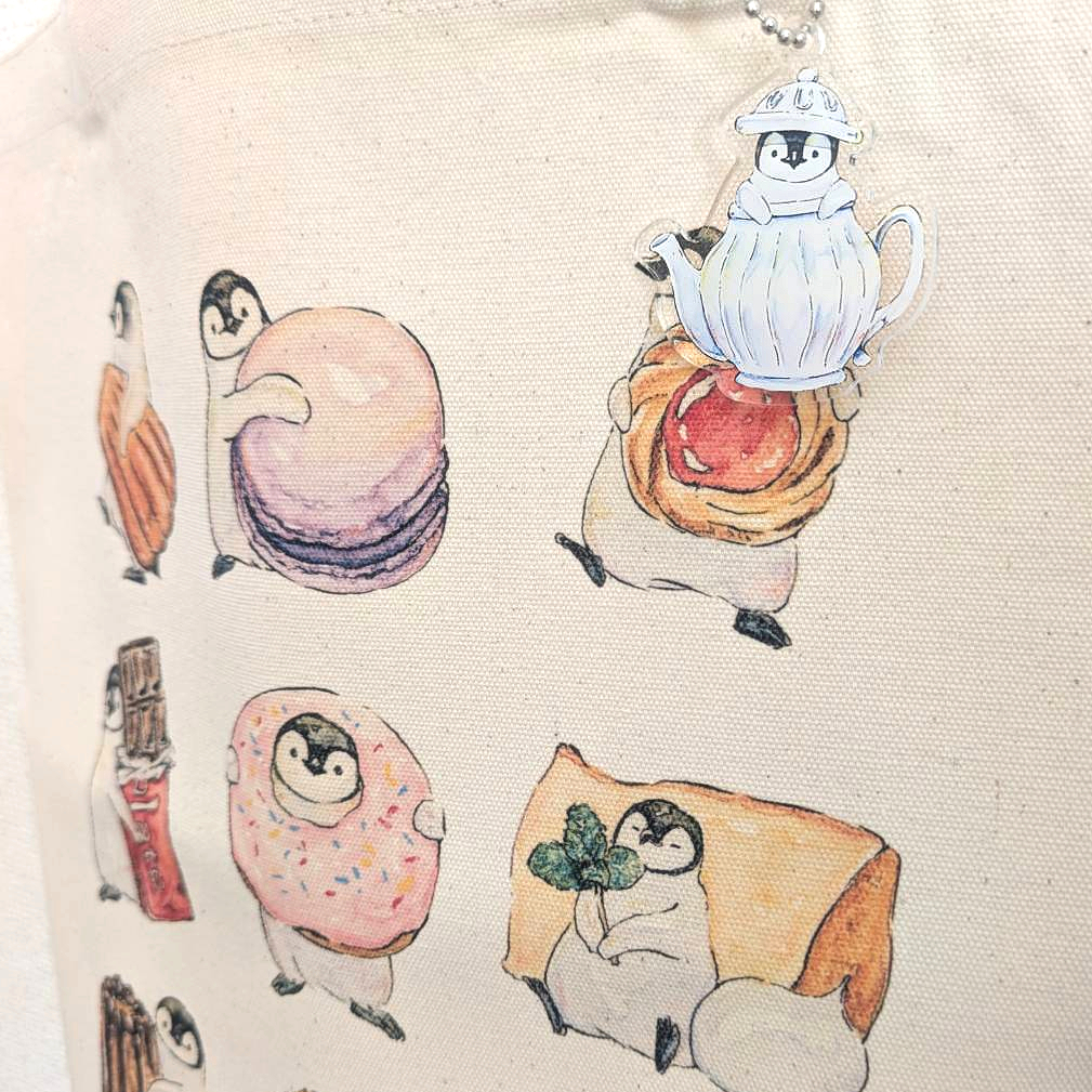 今回の梅田会場に合わせて制作した新作をメインに、トートバッグ・キーホルダー・フレークシール・ポストカードをお届けします。