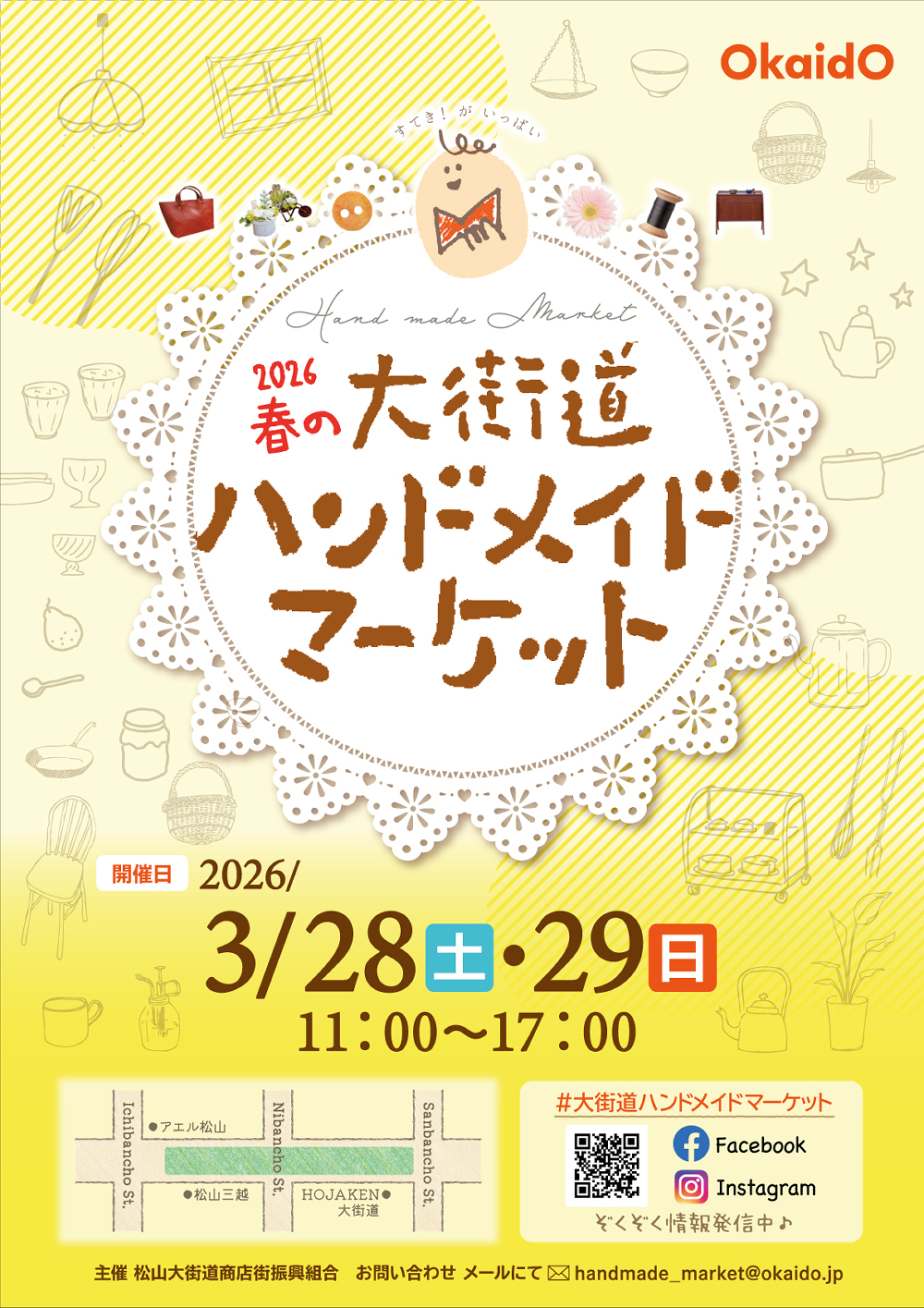 2026/3/28(土)~3/29(日)に松山市大街道にて開催の 大街道ハンドメイドマーケット に出店します。